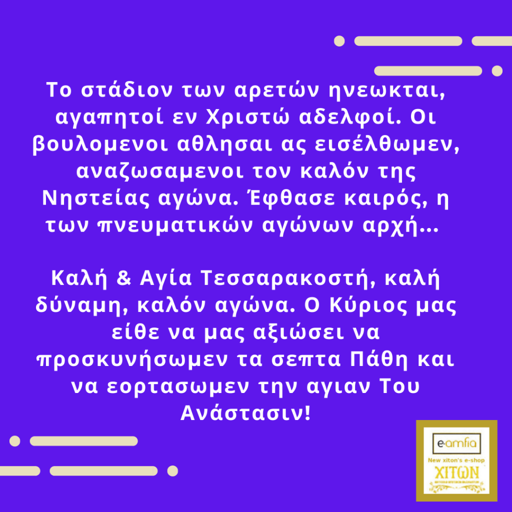 Καλή Αγία και Μεγάλη Τεσσαρακοστή.